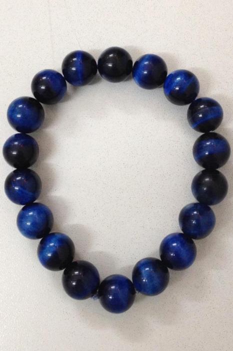 Vòng tay phong thủy đá mắt hổ màu xanh đậm